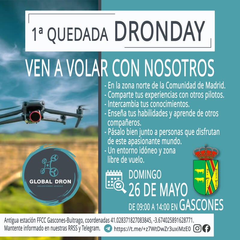 El pasado 26 de mayo tuvo lugar, en la antigua estación de Gascones, la primera quedada DRONDAY celebrada en la Comunidad de Madrid.
